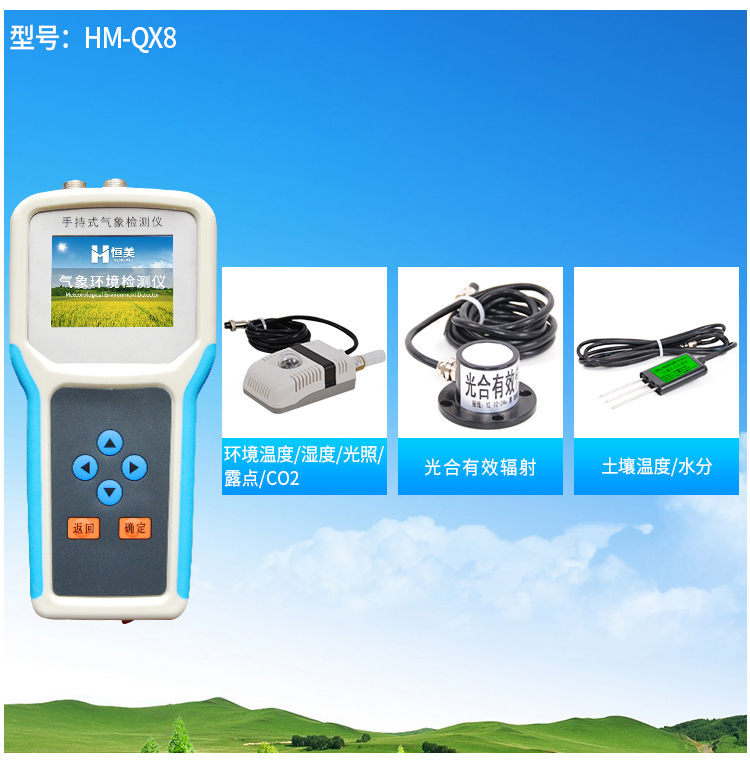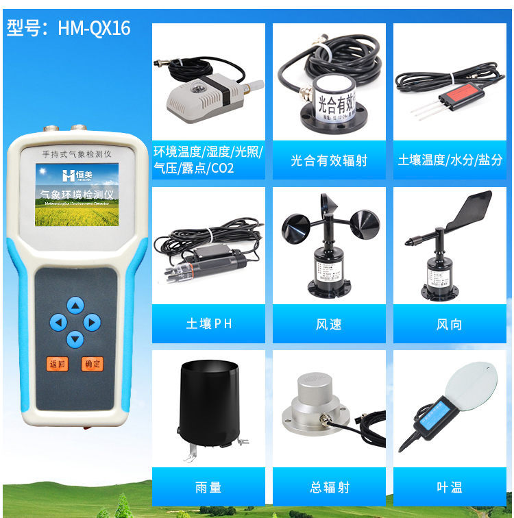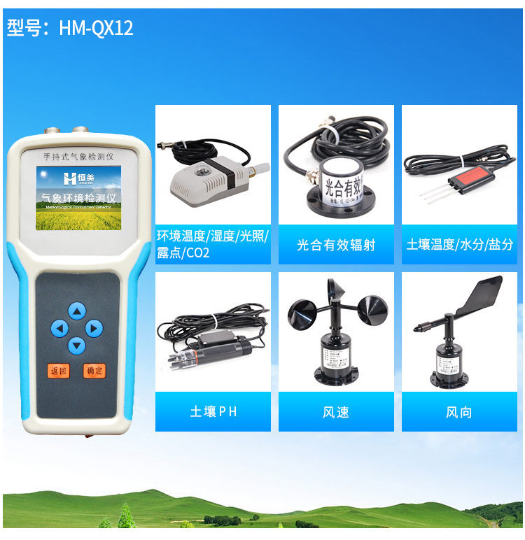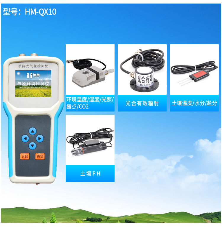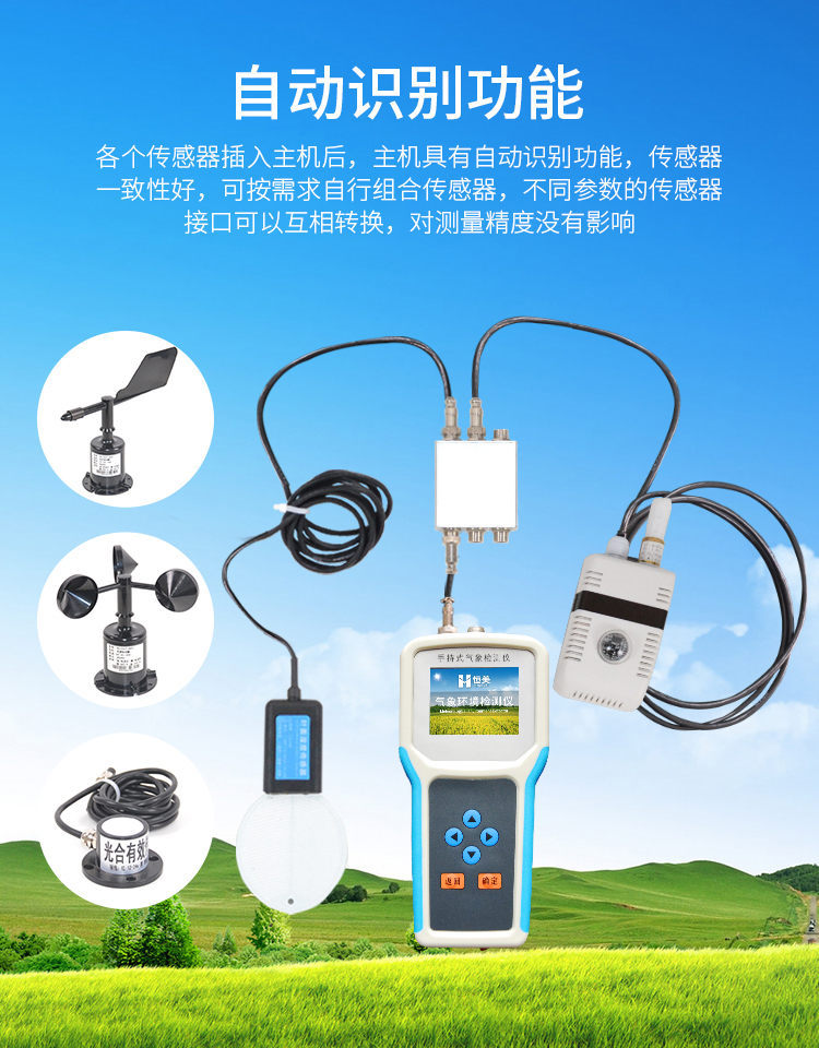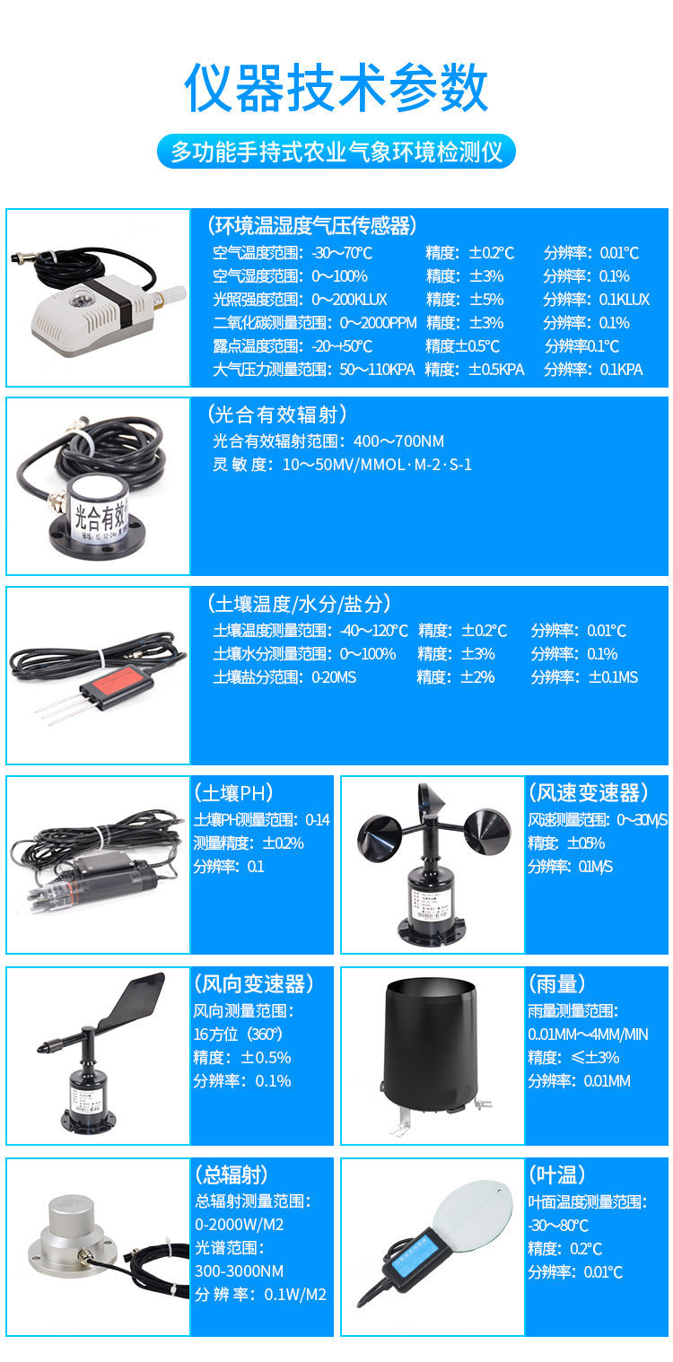 手持式智能農(nóng)業(yè)氣象環(huán)境檢測儀是我們專門針對農(nóng)田、草場局部小尺度環(huán)境設計的,對與植被和農(nóng)作物生長密切相關的土壤、水氣等環(huán)境參數(shù)監(jiān)測的農(nóng)田小氣候站。它主要觀測與農(nóng)業(yè)相關的空氣溫度、空氣濕度、光照強度、二氧化碳濃度、露點溫度、光合有效輻射、土壤溫度、土壤濕度、土壤鹽分、土壤PH等10個環(huán)境參數(shù)氣象要素,為農(nóng)業(yè)科研、農(nóng)業(yè)生產(chǎn)等提供良好的支持。