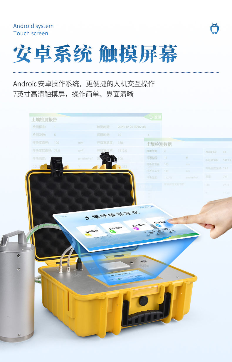 土壤呼吸作用測定儀能實時顯示呼吸室內(nèi)部CO?、H?O、溫度和大氣壓力的變化,廣泛應(yīng)用于農(nóng)業(yè)生態(tài)科研、碳源碳匯研究、全球氣候變化、土地利用變化、生態(tài)修復(fù)、土壤微生物活力評估、植物生態(tài)研究、昆蟲與根系呼吸研究以及水果貯藏等領(lǐng)域。